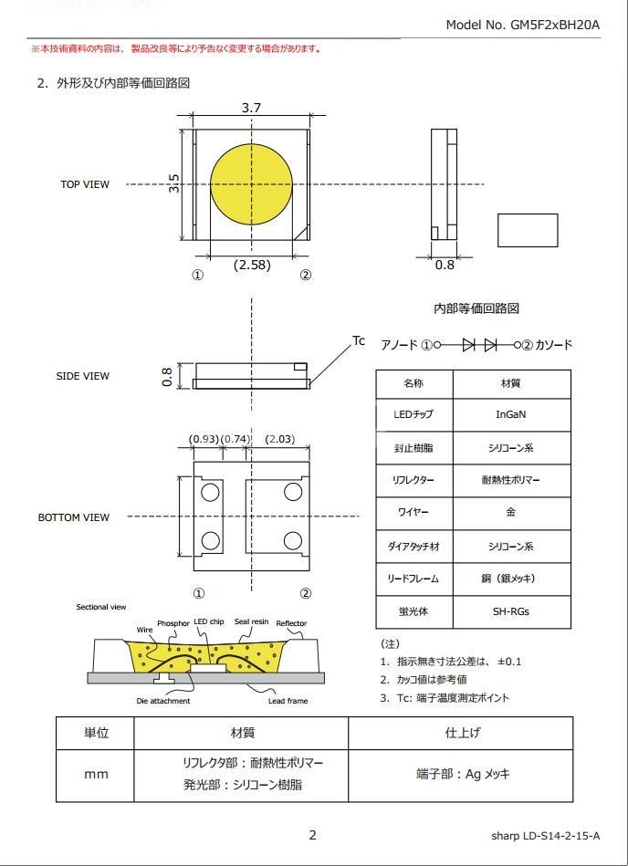 ¡¾Size¡¿: 3.7 ¡Á 3.5 ¡Á 0.8 mm (L ¡Á W ¡Á H), light-emitting surface d = 2.58mm