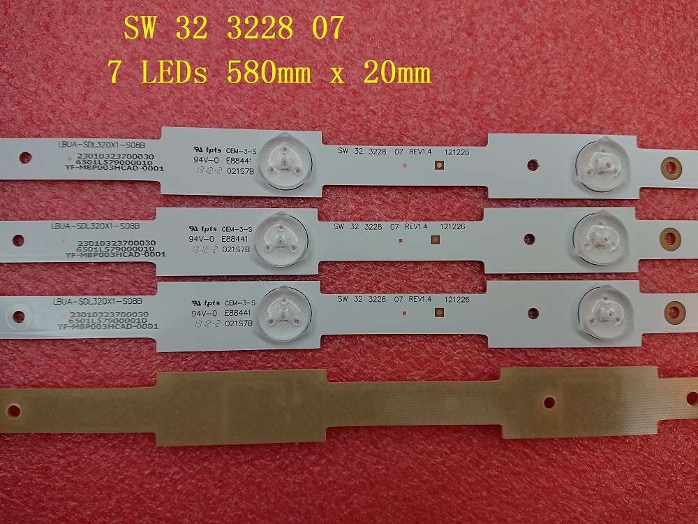 3 Pieces LED strip for samsung SW32 SW 32 3228 07 LBUA-SDL320X1-SO8B 7 LEDs 580mm x 20mm